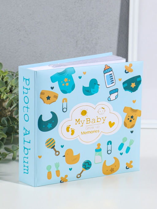 Фотоальбом на 200 фото 10х15 см "Малышковый" голубой, бумажные листы 4,5х22х22,5 см