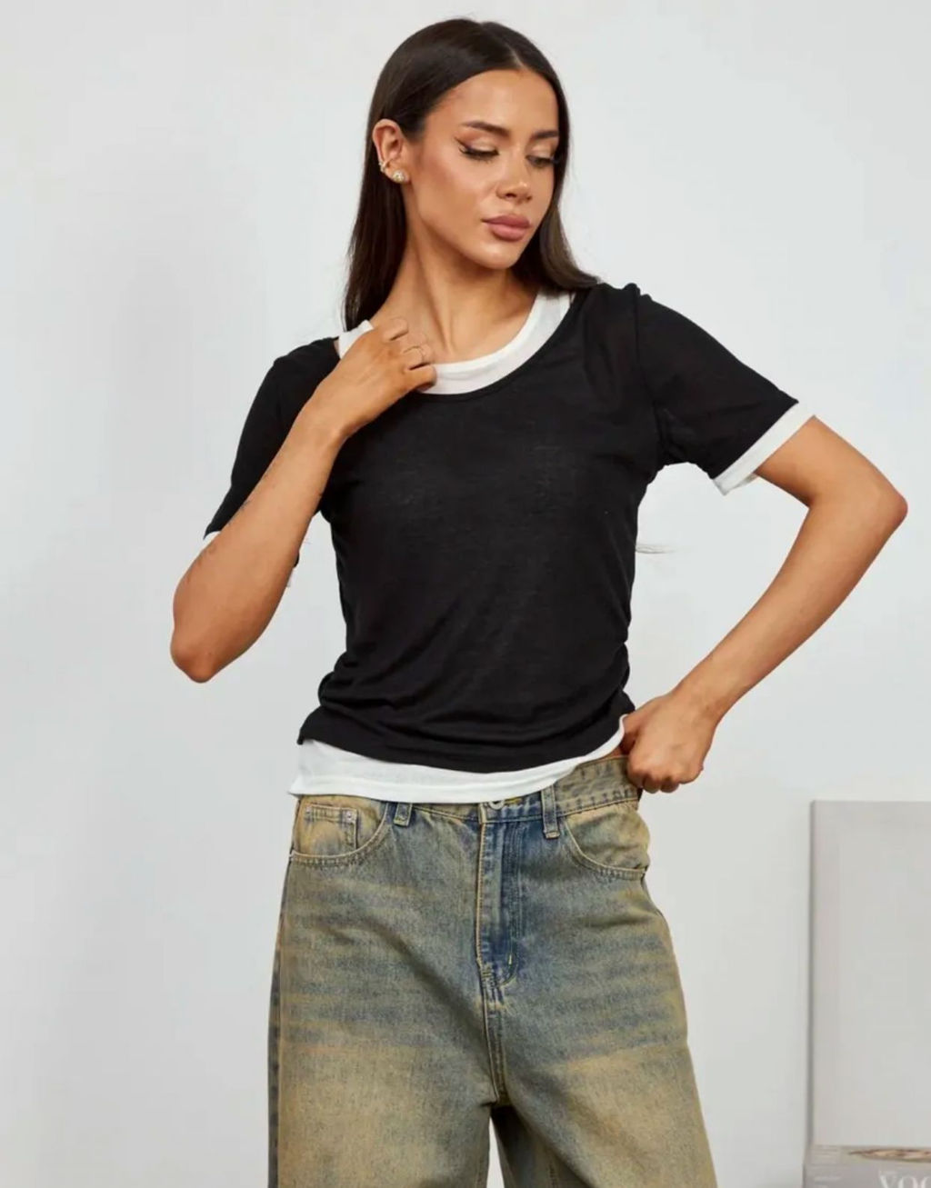 • K13568 Футболка с имитацией майки ЧЕРНЫЙ
