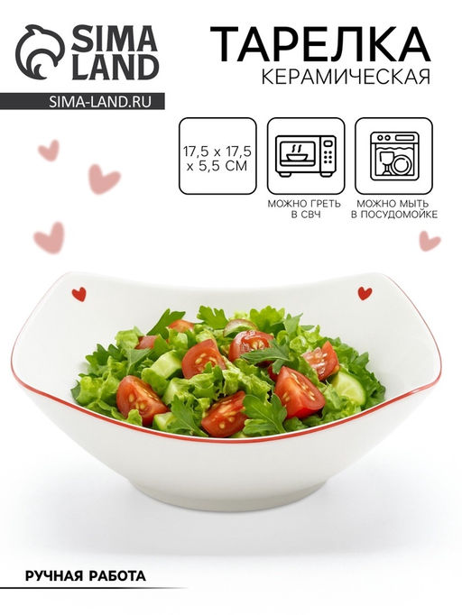• Тарелка суповая керамическая Любовь в деталях, 17.5?17.5?5.5 см, ручная работа