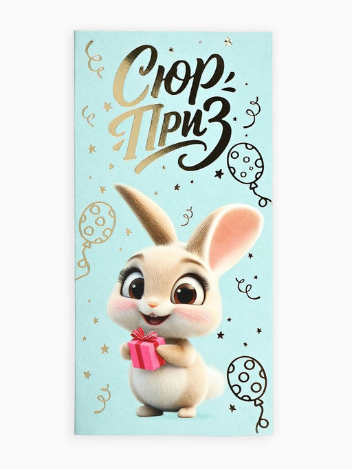 Цена за 10 шт. Конверт для денег «Сюрприз», зайчик, тиснение, 16.5×8 см