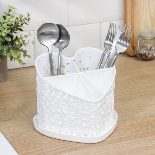 Поддерживайте порядок на вашей кухне с этой удобной белой пластиковой подставкой-сушилкой "Сердечко" для столовых приборов! Эта компактная и функциональная подставка размером 17x18.5x15.5 см не только поможет организовать хранение ложек, вилок и других приборов, но и станет милым акцентом в интерьере вашей кухни.