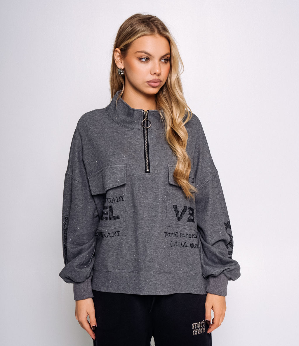 Свитшот это одежда, которая выделяет яркость и уникальность каждой женщины. Модель стильного свитшота на замке с акцентными надписями и стразами станет отличным выбором для ваших привлекательных образов. Его предпочитают покупательницы, которые любят сочетание эксклюзивности и адекватной цены. Фасон подчеркивает привлекательность фигуры. Компания-производитель знает, как разработать модные и оригинальные решения. Для изготовления использована ткань 80% хлопок и 20% полиэстер, которая характеризуется отменным качеством. Даже после многократных стирок изделие не утратит первоначальной красоты. Вы сможете его носить с радостью. Обратите внимание на цвет. Он является глубоким и полностью соответствует фотографии на странице. Чтобы вы были уверены в размере, мы представили на сайте таблицу. Воспользовавшись ею, вы сможете сами обмерить себя и удостовериться. Предложенная нами цена является доступной. Не откажите себе в удовольствии быть стильной и привлекательной! Рост модели: 168, параметры: 89-63-90. -- Характеристики -- Цвет: серый Пол: Женский Страна производитель: Китай Сезон: Демисезон Материал: Хлопок, Полиэстер
