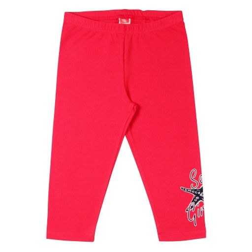 Бриджи без боковых швов из гладкокрашенной кулирки с эластаном. Верхний срез обработан швом вподгибку, с предварительно вставленной резиной. Декорированы принтом.