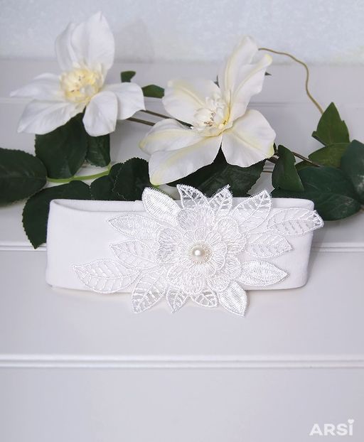 Описание модели: Повязка для девочки GRAZIA (Грация) прекрасный выбор как для выписки малышки из роддома, так и для первых выходов в свет.