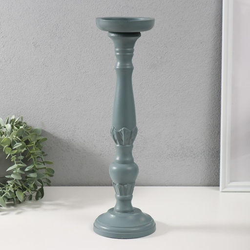 • Деревянный подсвечник на 1 свечу «Колонна цветочная», серо-сиреневый, 10×10×37 см