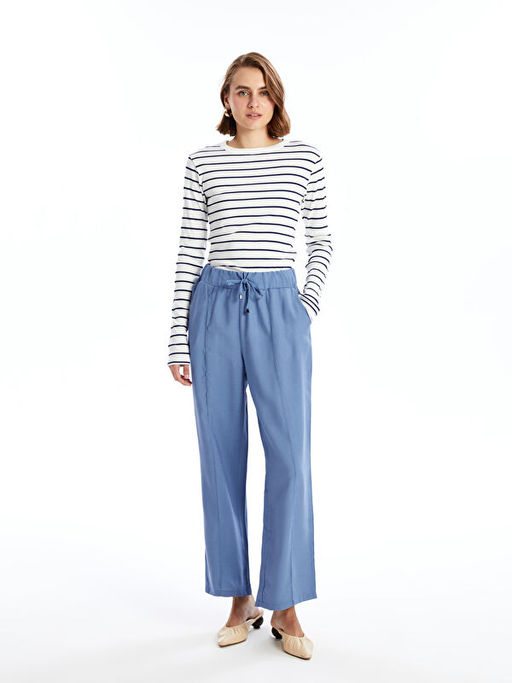 Beli Lastikli D?z Geni? Pa?a Kad?n Pantolon