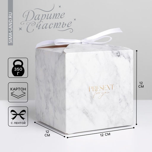 Форма: Куб. Плотность, г/м²: 250. Длина, см: 12. Ширина, см: 12. Высота, см: 12. Допустимый вес вложения, г: 350. Тематика: Мрамор. Символ года: Нет. Тематика праздника: Универсальная тематика. Вид: Складные коробки. Размер: Малый (11-17 см). Бесплатная доставка: Да. Наша разработка: Да.