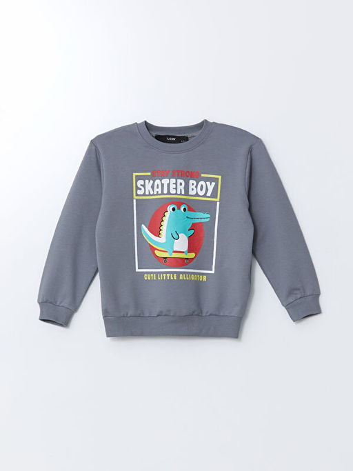 Bisiklet Yaka Bask?l? Erkek Bebek Sweatshirt