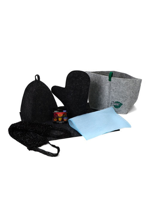Набор для бани "Чистый успех" (шапка,коврик,рукавица,масла,мочалки)