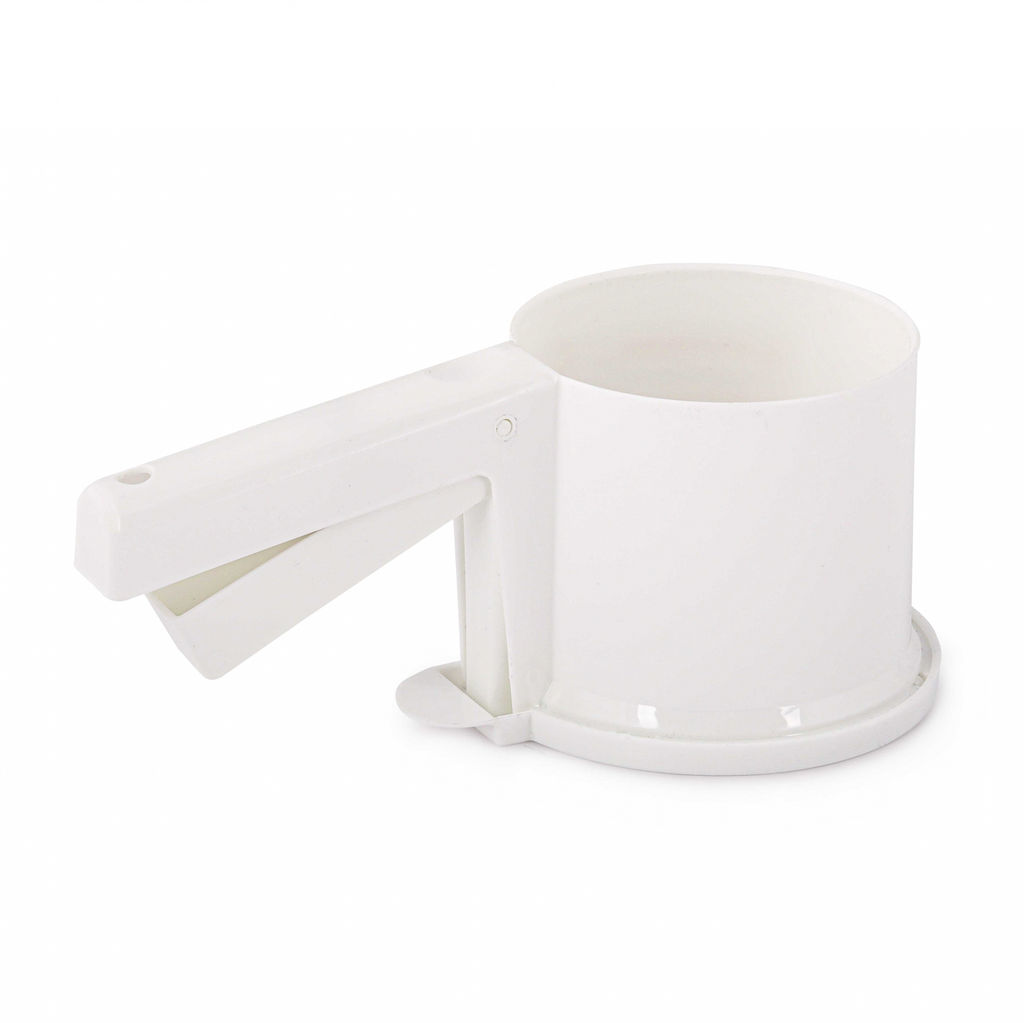 Просеиватель предназначен для муки, крупы и других сыпучих продуктов.Оснащен удобной ручкой с пружинным механизмом, который вращает лопасти внутри кружки-сита. В отличие от традиционного сита, кружку не нужно трясти и мука не будет рассыпаться по всей кухни. Механизм вращает лопасти и, при повторяющихся нажатиях на ручку, мука аккуратно просеивается, а лопасти разбивают образовавшиеся комочки. В комплекте стакан с ручкой и поддон, для удобного хранения и транспортировки стакана с содержимым.­