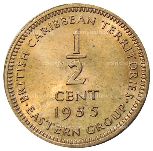 • Монета 1/2 цента 1955 года Британские Восточные Карибы