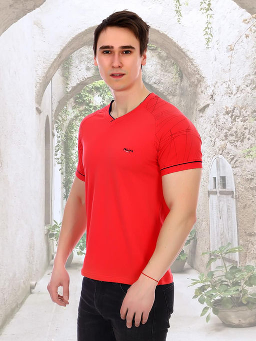 Мужская футболка выполнена из кулирки с лайкрой. V-образная горловина, короткие рукава с рисунком, на груди принт.