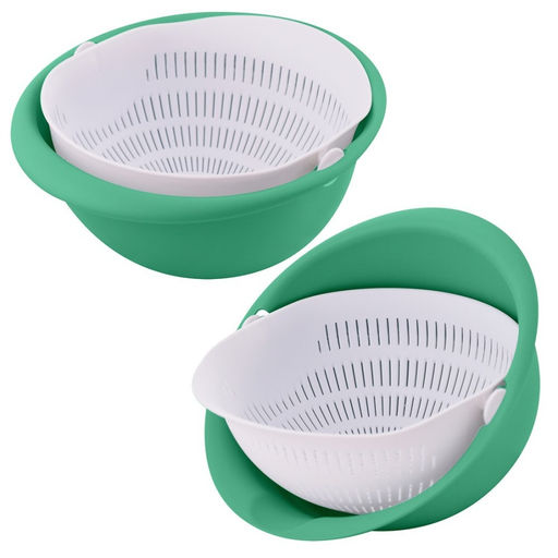Миска-дуршлаг настоящая находка для каждой хозяйки! Приспособление подойдет не только для мытья овощей и фруктов, но и для размораживания продуктов: мяса, рыбы, ягод. Внутренняя миска имеет отверстия, сквозь них стекает вода в основную емкость. Чтобы слить жидкость, достаточно наклонить миску над раковиной привычным способом. Подвижная внутренняя часть перейдет в горизонтальное положение и все продукты останутся на месте.
