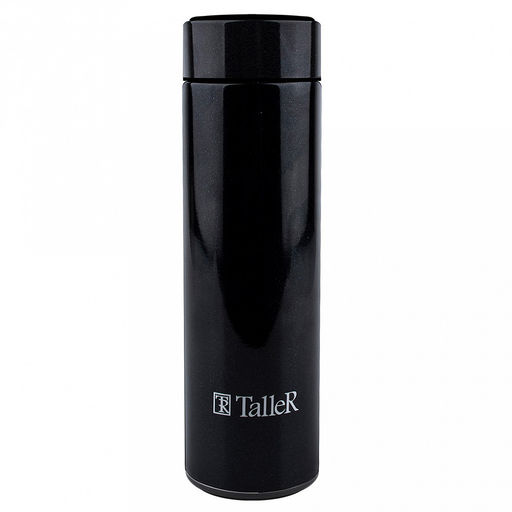 • Термос из нержавеющей стали с узкой горловиной 0,45л "Морис" д6,3см, h22см, горло д5см, съемная сетка-фильтр, сенсорный индикатор температуры (несъемная батарейка), герметичная крышка, покрытие - черное, глянцевое, "TalleR" (Китай)