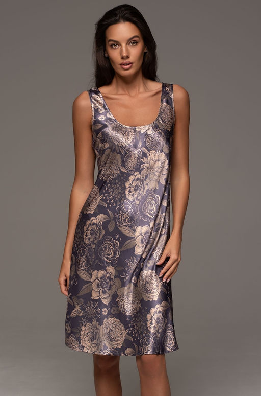 Сорочка Mia-Amore длиной до колен и широкими бретелями выполнена из смесового шелка. На спинке вырез каре. Состав:70% натуральный шелк, 25% полиэстер, 5% эластан