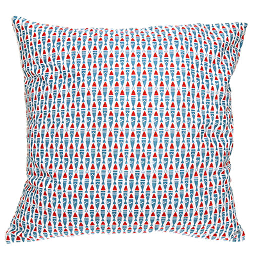 • Наволочка декоративная 43х43см "Рыбы" голубой, искусственная ткань, на молнии (Китай)
