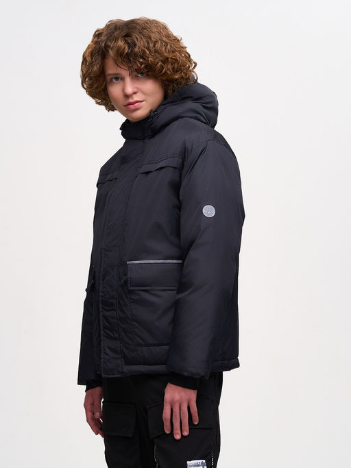 Утепленная зимняя куртка свободного прямого силуэта с втачным рукавом. Втачной капюшон с высокой горловиной надежно защищает от ветра и снега. Край капюшона-с кулисой, регулируемой шнуром-резинкой и стопорами. По низу рукава эластичный трикотажный манжет с прорезью для большого пальца обеспечивает сохранение тепла. На левом рукаве светоотражающая нашивка с фирменным логотипом. Кокетка на полочке придает оригинальный вид изделию. Застежка центральная на молнию с оригинальным черным пуллером и ветрозащитной планкой на магнитах, а также внутренней стеганой планкой. Накладные карманы снабжены верхним клапаном на липучках и и застегиваются на молнию с оригинальным черным пуллером. По верху клапана кармана светоотражающая вставка-кант. Ширина низа изделия регулируется с помощью эластичного шнура со стопорами. Вся наша продукция сертифицирована и соответствует высочайшим стандартам качества, наша компания является участником программы "Бережливое производство" Материал подкладки 100% полиэстер 270T таффета Утеплитель Полочка и спинка: 300 г/м², Рукава: 260 г/м², Капюшон: 220 г/м²