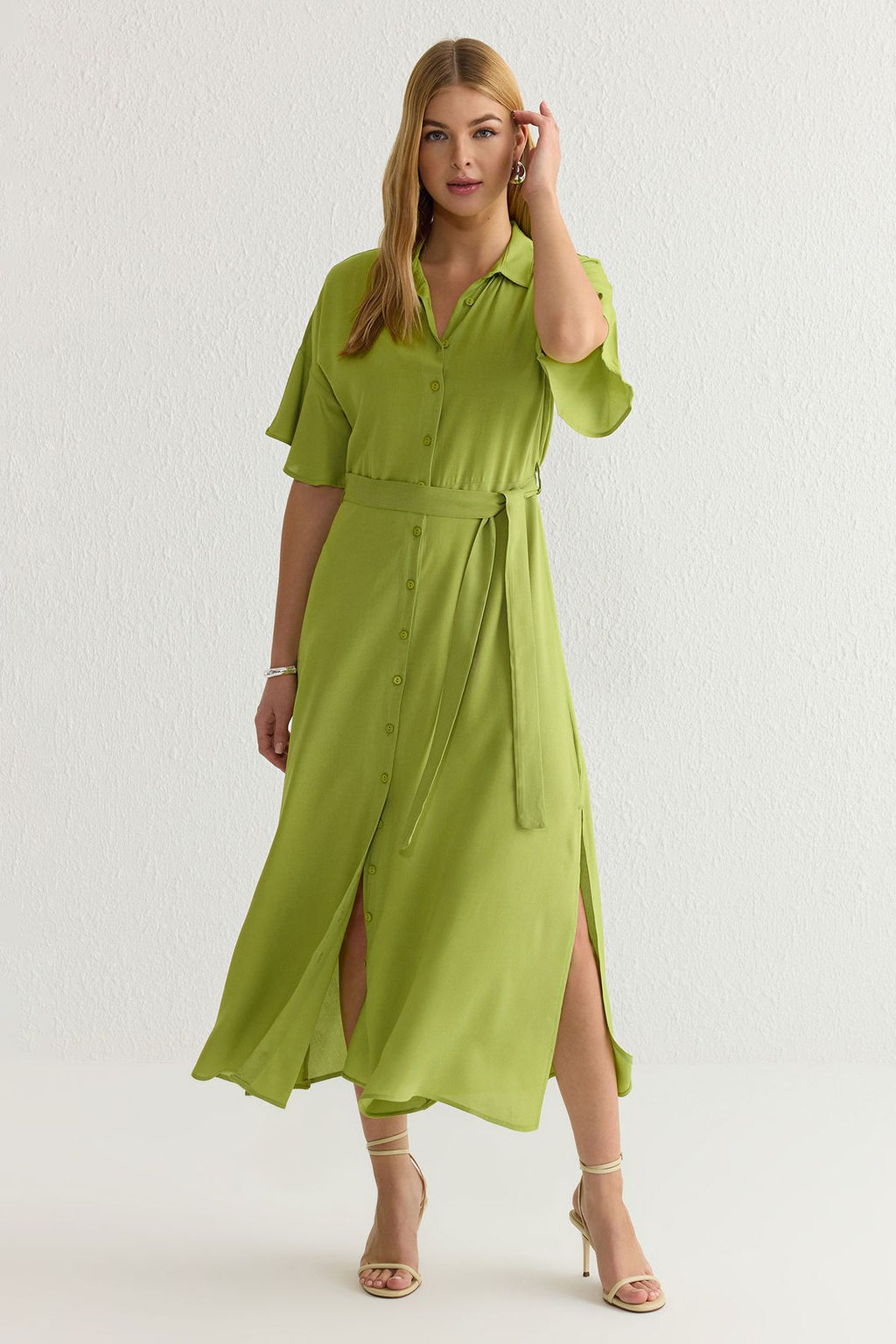 • Yag Yesil Puantiyeli Kusakl? Midi Dokuma Elbise TWOSS19EL0094