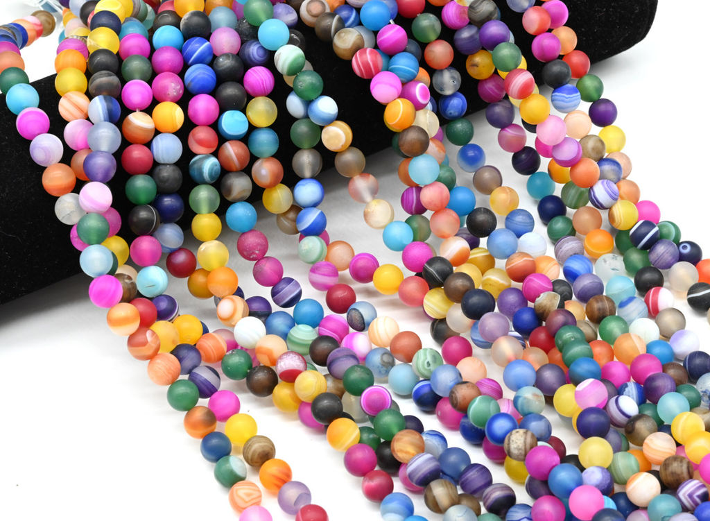• Бусины из агата тонированного шарик 8мм цв.ассорти матовый, 38см, 47 бусин Радуга камня