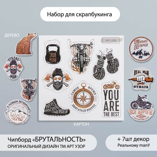 • Набор для скрапбукинга "Брутальность" чипборд 10х10 см + декор 7 шт