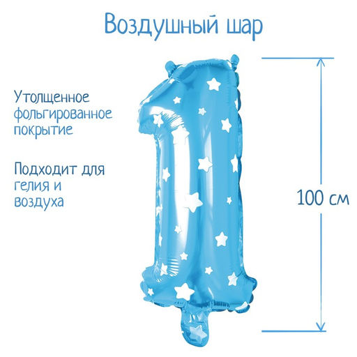 • Воздушный шар фольгированный 40" «Цифра 1», звёзды, цвет голубой