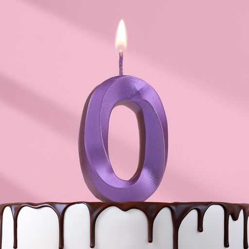 • Цена за 2 шт. Свеча в торт «Грань», цифра 0, фиолетовый металлик, 6.5 см