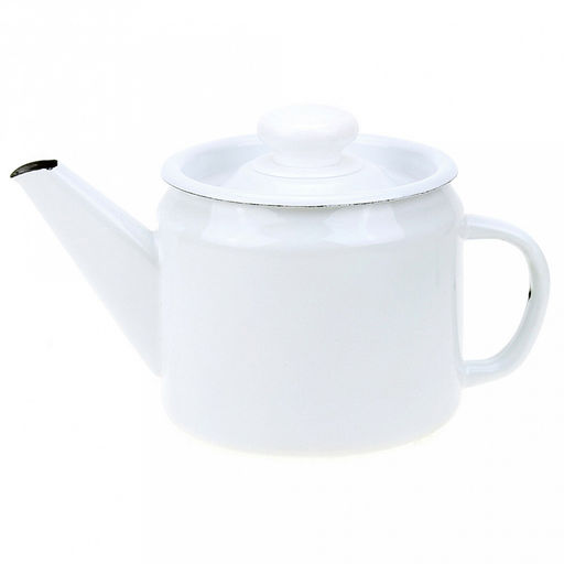 • "Белые ночи" Чайник эмалированный 1л, д12см, h10,2см, металлическая крышка с пластмассовой ручкой-кнопкой, металлическая фиксированная ручка, без деколи (Россия)