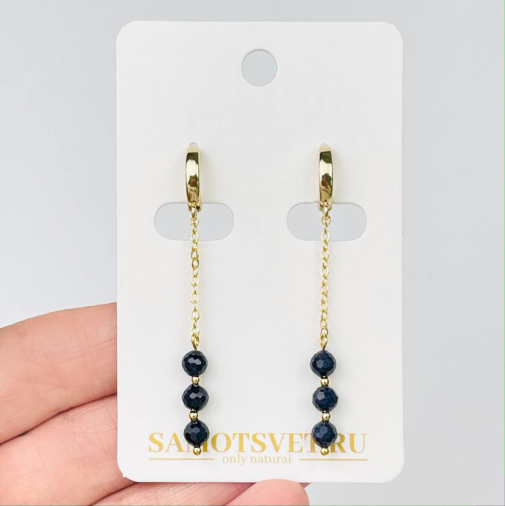 • Серьги на цепочке из камня Сапфир