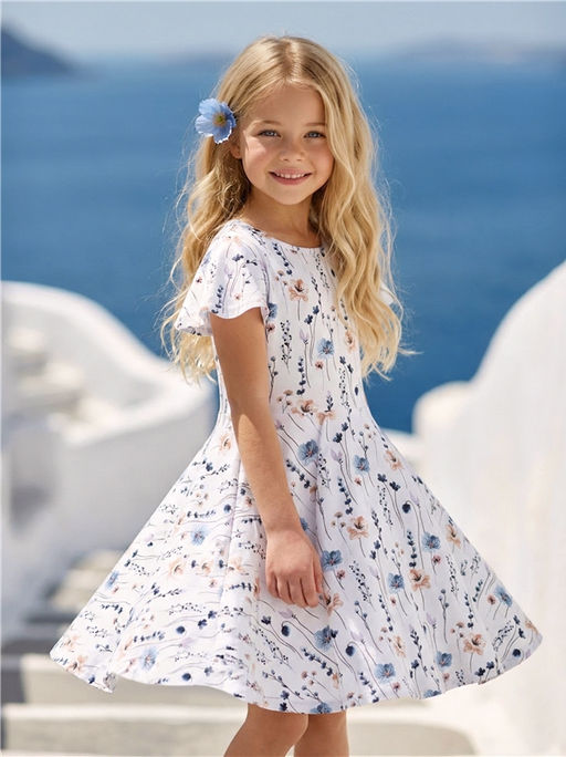 платье,хлопок 100%,кулир / хлопок 100%,- / нежные цветы на белом / - / - / - / -,Платье для девочки из кулира - тонкого хлопкового набивного полотна. Изделие полуприлегающего силуэта, с короткими рукавами-крылышками и круглым вырезом горловины. Юбка-полусолнце отрезная по талии. Уход: только машинная стирка (руками не стирать!) при температуре 40 градусов, без предварительного замачивания.