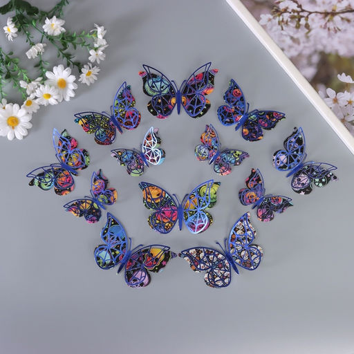 • Наклейка бумага, пластик Бабочки на Хэллоуин, синие, набор 12 шт.
