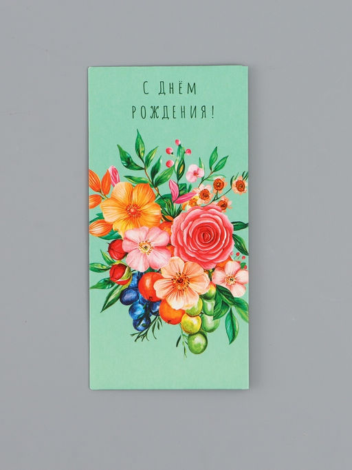 • Цена за 10 шт. Конверт для денег «С Днем Рождения!», цветы и ягоды, 16,5 х 8 см