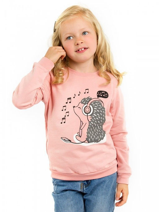 Изделие с длинным рукавом ( на манжетах). Вырез горловины округлый. Горловина, манжеты и нижняя резинка выполнены из рибаны. Декорррирован джемпер принтом. Тип ткани-Футер 2-х нитка.­