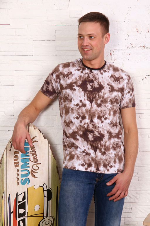 Футболка прямого кроя с круглым вырезом. Приятная на ощупь ткань не потеряет свой первоначальный вид после множества стирок. Футболка хорошо пропускает воздух и не закатывается. Трендовый принт тай-дай в виде хаотично расположенных цветовых пятен