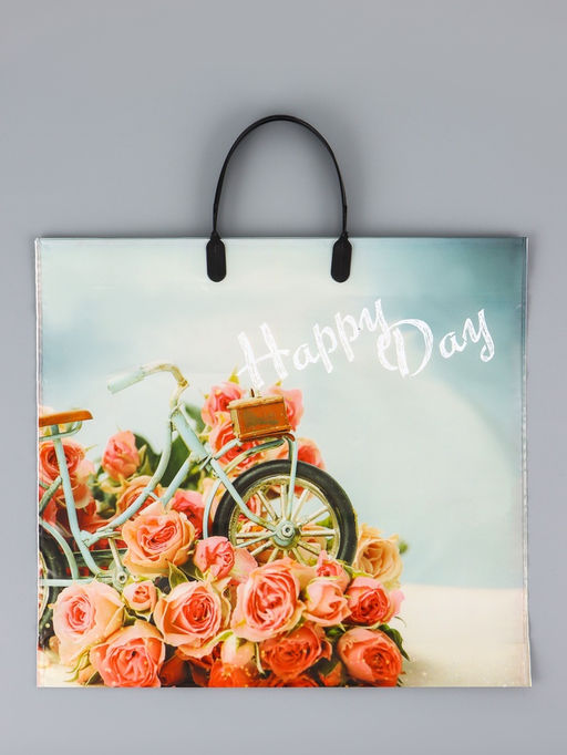 Праздничная прочность для особых сюрпризов. Пакет Счастливый день с пластиковой ручкой, 38x34 см это сверхплотная и вместительная упаковка с ярким дизайном. Ее усиленная конструкция создана для ценных и тяжелых подарков женщинам и девочкам.
