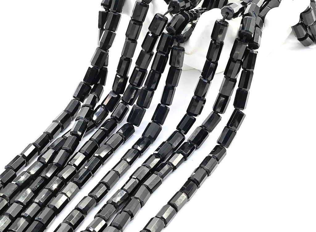 Бусины из агата черного цилиндр с огранкой 7*10мм, 38см, 38 бусин Радуга камня