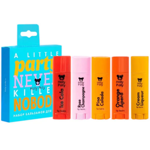В набор входит 5 бальзамов для губ с различными ароматами: шампанское, кола, сливочный ликер, пина-колада и апельсиновый аперо. Бальзамы для губ Holly Polly разработаны для увлажнения, питания, смягчения и заживления чувствительной кожи. Они уберегут от обветривания, шелушений, трещин и сухости. Нежная масляная текстура избавит от дискомфорта и неприятных ощущений. Может использоваться как самостоятельное увлажняющее бьюти косметическое средство или как база под губную помаду. Станет удачным дополнением к любому подарку и на любой праздник.