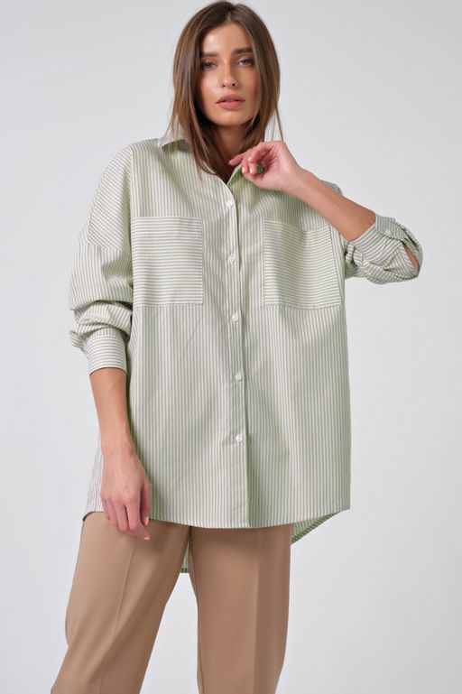 Рубашка оверсайз с длинным рукавом из хлопка в полоску на зеленом