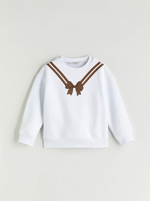 Bisiklet Yaka Fiyonk Bask?l? K?z ?ocuk Sweatshirt