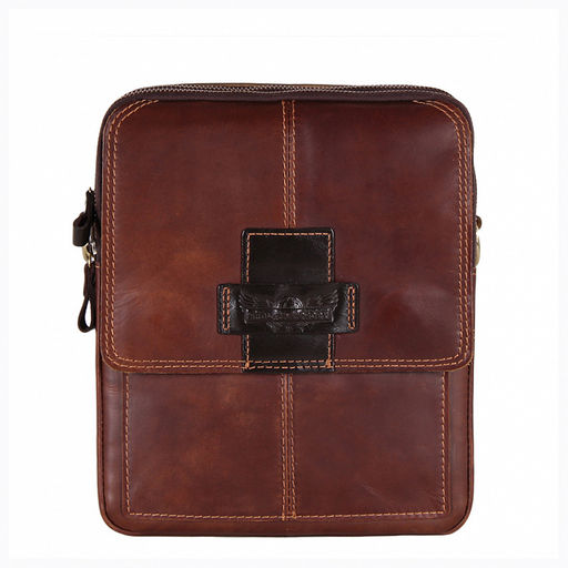 Мужская сумка, выполнена из натуральной кожи. Дополнена винтажной фурнитурой. Данная модель закрывается на молнию, носится на плече. Каркас полужесткий. Ремень-стропа съемный.