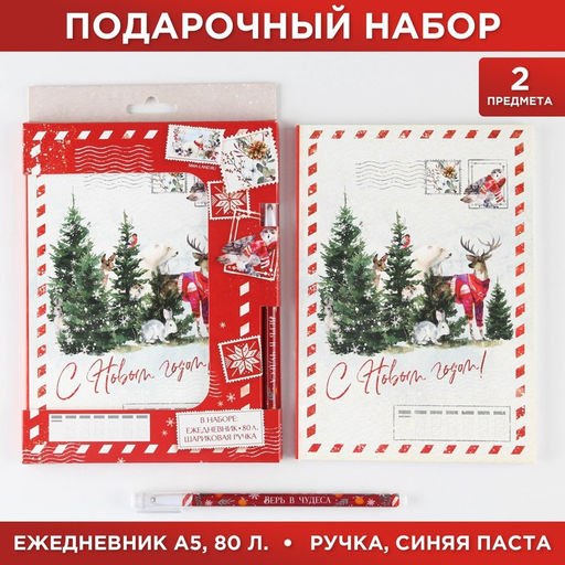 Подарочный набор станет прекрасным подарком на праздник.ЕжедневникФормат: А5;Количество листов: 80;Особенности: мягкая обложка;Материал: бумага, картон.РучкаМатериал корпуса: пластик;Стержень заменяемый: да;Цвет стержня: синий;Тип: неавтоматическая ручка.Упаковка: плёнка. Для кого: Для женщины. Формат: А5. В наборе, шт.: 2. Количество листов: 80. Тематика: Новогодняя. Вид упаковки: Коробка картонная. Символ года: Нет. Тематика праздника: Новый год. Адресат: Без адресата. Составляющие набора: Ручка. Составляющие набора: Ежедневник. Возраст: Для взрослых. Вид обложки: Мягкая. Стиль: Скандинавский. Бесплатная доставка: Да. Наша разработка: Да.