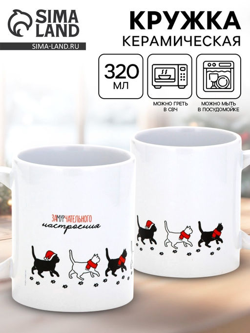 Кружка новогодняя керамическая «Замурчательного настроения», 320 мл