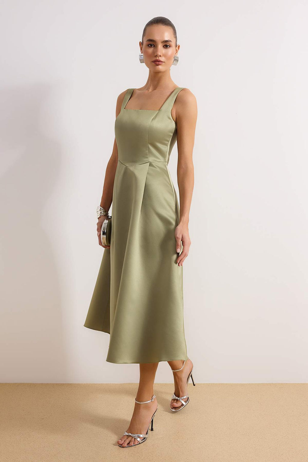 • Yag Yesil A-Kesim Saten Dokuma S?k Abiye Gece Mezuniyet Elbisesi TPRAW25EL00040