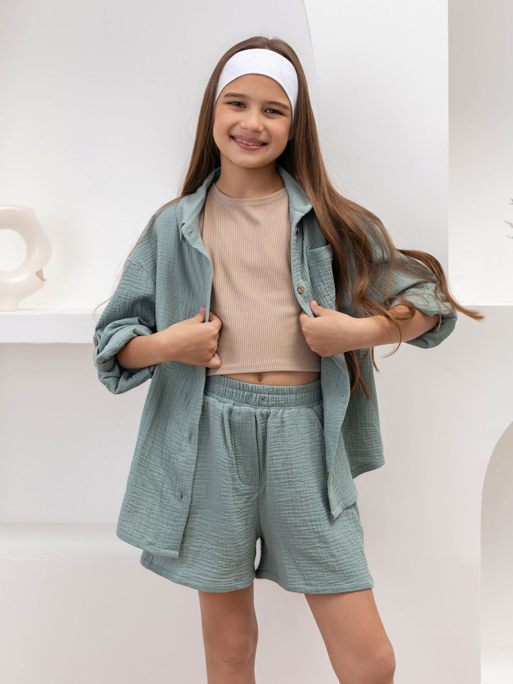 Комплект для девочек Муслин Фисташковый М-18КД MODAMICA