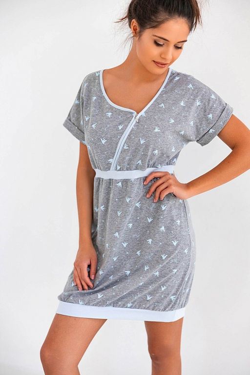 Ночная рубашка Leah, идеальна как для беременных, так и во время грудного вскармливания. Модель изготовлена из высококачественного хлопка. Вырез с застежкой-молнией, которая облегчит кормление. Все дополняется нежным узором.­