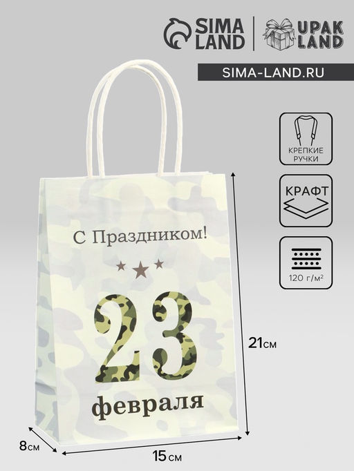 Этот подарочный пакет из крафт-бумаги на 23 февраля идеально подходит для мужских подарков.