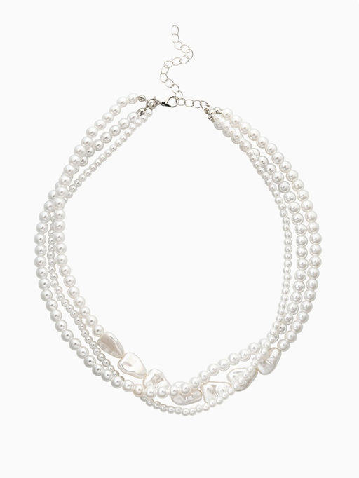 Чокер- бусы «Сияние жемчуга. Сердце мятое», L=45 см, белый в серебре