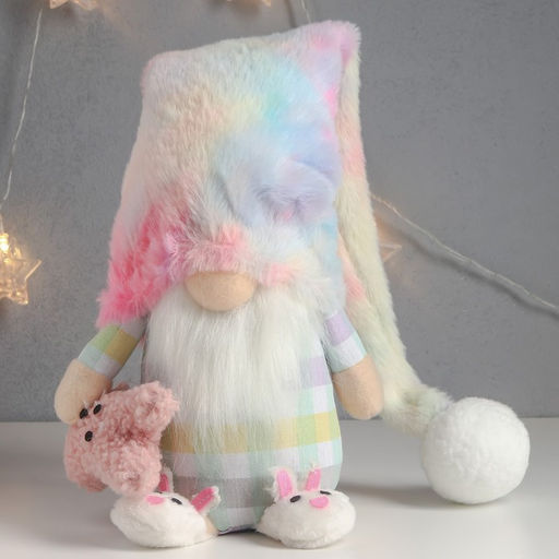 Кукла интерьерная "Гном в пижаме и тапочках, с игрушкой-зайкой" 57х13х13 см