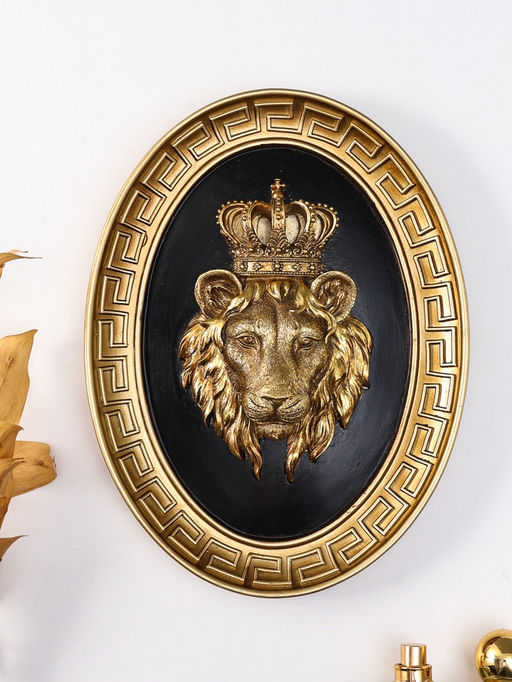• Панно интерьерное полистоун "Лев - царь зверей" чёрный с золотом 20х4,5х26,2 см