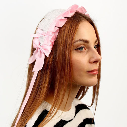 • Карнавальная повязка Лолита, розовая с белым кружевом