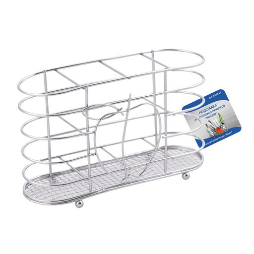 Подставка для столовых приборов не только позволит  хранить кухонные принадлежности, но и украсит собой пространство. Выполнена из стальной хромированной проволоки, прекрасно смотрится в любом интерьере, не занимает много места, прослужит долгое время.